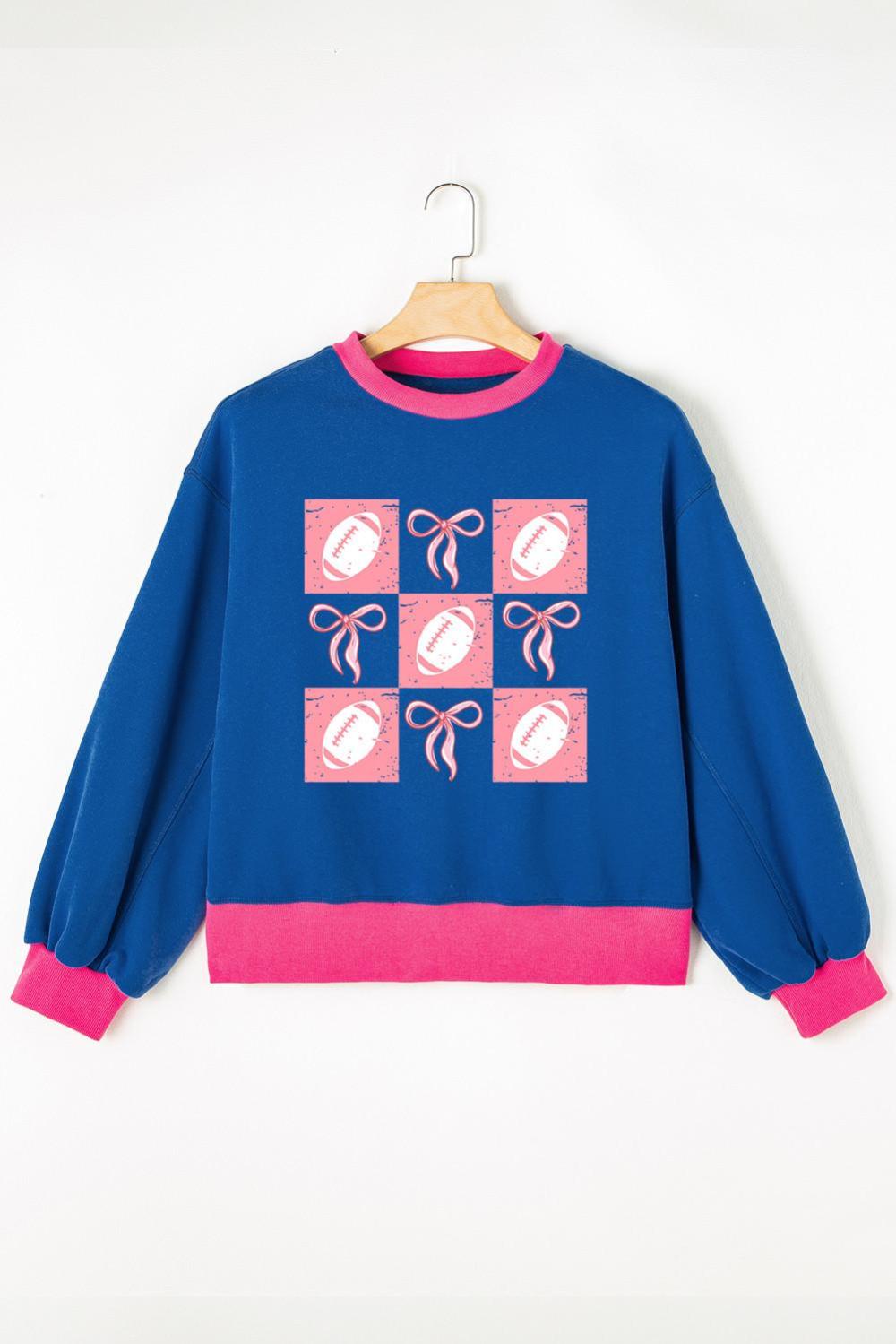 - The Unique Graphic Print Featuring A Football And Bow Adds A Playful And Eye-Catching Element To The Classic Sweatshirt Silhouette.