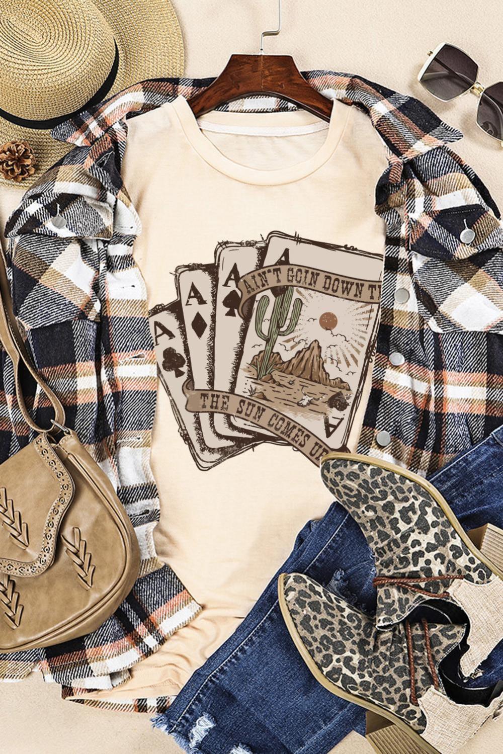 Women Khaki Western Poker Card Graphic T Shirt | Tees & Tanks